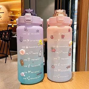 Garrafa de Água Motivacional Gradiente com Alça 1,5L para Academia com Adesivos para Colar Garrafa de Água Motivacional Colorida Gradiente 1,5L com Adesivos para Colar, uso Adulto e Infantil para Academia, Parque, Escolas. Trava Anti-vazamento, Alça para Segurar. Cor será enviada conforme Características: 1. Material: feito de polipropileno, policarbonato e silicone de qualidade. Estável, grau alimentício e não causa danos à saúde. Sua leveza e a alça de pulso portátil facilita a hidratação em movimento. 2. Tampa superior de encaixe: a tampa é fixada no copo para evitar que caia durante o exercício ou caminhada. Mais prático e higiênico. 3. Com canudo: Este design é propício para esportes como ciclismo ou corrida. Feito de silicone, é macio e seguro. 4. Marcador de horário: está sempre muito ocupado e esquece de hidratar o corpo ao longo do dia Nossa garrafa de água tem um design que lembra você de beber água. Coloque-a na mesa e você não esquecerá mais de beber água. 5. Cor degradê: com muitas garrafas de água na academia, você tem receio de pegar a errada Com nosso design de cores gradientes, você reconhecerá a sua garrafa de água entre muitas de longe. Aviso: A cor real pode ser ligeiramente diferente da imagem devido a diferentes telas e efeitos de luz. Descrição: Material: Polipropileno, policarbonato e silicone. Tamanho: 30 x 11 cm. Capacidade: 1,5L litros. Resistência a temperaturas: 0 a 80 ºC. Inclui: 1 garrafa de água para esportes e 1 cartela de adesivos. Marca: Não Informado Ean: 8841867269207