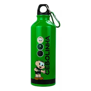 Garrafa de alumínio com capacidade pra 500 ml. Na cor verde, vem estampada com rosto do Cebolinha, personagem dos quadrinhos Turma da Mônica. Garrafa ideal para servir bebida em copos, vem com prendedor de mochila. Tampa rosqueável. Material: alumínio Código: MQH060-2-MCPeso: 70gAltura: 21,5cmLargura: 6,5cmComprimento: 6,5cm