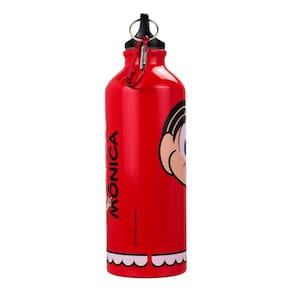 Garrafa de alumínio com capacidade pra 500 ml. Na cor vermelha, vem estampada com rosto da Mônica, personagem dos quadrinhos Turma da Mônica. Garrafa ideal para servir bebida em copos, vem com prendedor de mochila. Tampa rosqueável. Material: alumínio Código: MQH060-1-MCPeso: 70gAltura: 21,5cmLargura: 6,5cmComprimento: 6,5cm