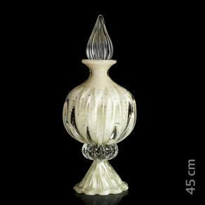 A Garrafa Em Cristal Murano Da São Marcos é uma peça decorativa produzida 100% artesanalmente com a técnica secular e originária da Itália, a qual com muita maestria e criatividade são desenvolvidas e preservadas no brasil pela Cristais São Marcos desde 1962. A tradição do cristal murano e a inovação em detalhes, formas e cores, trazem requinte para a decoração. O colorido do murano em especial, torna-se um coringa na hora de decorar e produz um efeito muito bonito em locais com luz natural, não dependendo de nenhum outro elemento para se destacar. As peças em cristal murano, são atemporais, aposte nelas como a estrela da decoração ou ainda para harmonizar em combinações com diferentes artigos para compor um ambiente. Ficha Técnica Marca: São Marcos Modelo: Garrafa Com Base Em Cristal Murano Pérola São Marcos Ref.: 9156PE Material: Cristal Murano Cor: Pérola Medidas A x C x L : 18 x 18 x 45 cm Peso: 5,27Kg Conteúdo Da Embalagem: 01 Garrafa Com Base. Em Cristal Pérola São Marcos Junto com as peças em murano, leve ainda um pouco de história. Uma dica é misturar diferentes muranos e criar sua coleção de arte particular. O cristal murano, tornou-se objeto de desejo por suas características únicas. Sendo assim, com todas essas particularidades, ele é uma ótima escolha para decorar, colecionar e ainda presentear com classe e sofisticação. IMPORTANTE: Produto produzido de forma artesanal, são admitidas nas características finais do processo de produção desse produto pequenas variações de peso, formato, cor e ainda o aparecimento de minúsculas bolhas de ar, típicas do cristal murano. Marca: Não Informado