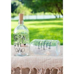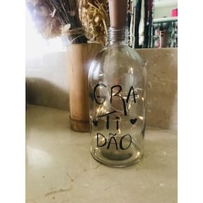 Acompanhando a garrafa, você pode adquirir separadamente a luz de LED, que possui 3 baterias pequenas e um dispositivo on/off na rolha, oferecendo praticidade no controle da iluminação. Invista na beleza e na inspiração que a Garrafa com LED Gratidão traz para sua decoração. Crie um ambiente acolhedor, iluminado e cheio de significado, transmitindo uma mensagem positiva para todos que o visitarem.