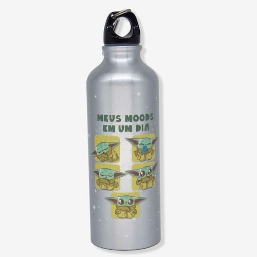 Garrafa Com Mosquetão The Mandalorian Depois de um dia cheio de aventuras descobrindo novas Galáxias, você precisa de uma mãozinha na hora de se hidratar? A gente te ajuda! Com 500ml de capacidade essa garrafa mata a sua sede! Não importa qual é a aventura, essa garrafa te acompanha por todos os planetas! A garrafa é nacional, muito prática e fácil de transportar, cabe em qualquer cantinho da sua mochila ou bolsa! Com 500ml de capacidade, não importa se você vai enfrentar trabalho, escola ou faculdade, essa garrafa te acompanha em todas as suas tarefas do dia a dia! Feita em alumínio, ajuda a manter a temperatura da sua bebida, para sua água ou suco estarem sempre fresquinhos!