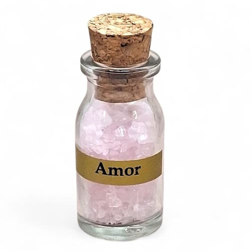 Garrafa com Pedras Quartzo Rosa — Amor, Autoestima e Boas Energias
