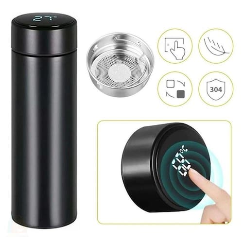 Descrição: Nossa garrafa térmica além de ser super elegante e inovadora mantém a temperatura do líquido, ainda possui um termômetro na tampa, com tela de led digital touch, onde você pode sempre verificar a temperatura do líquido tocando na tampa. A garrafa mantém 12 horas de água quente ou fria e possui um sistema que evita vazamentos. Perfeita para todos os momentos, viagens, esportes, trabalho e escola.
