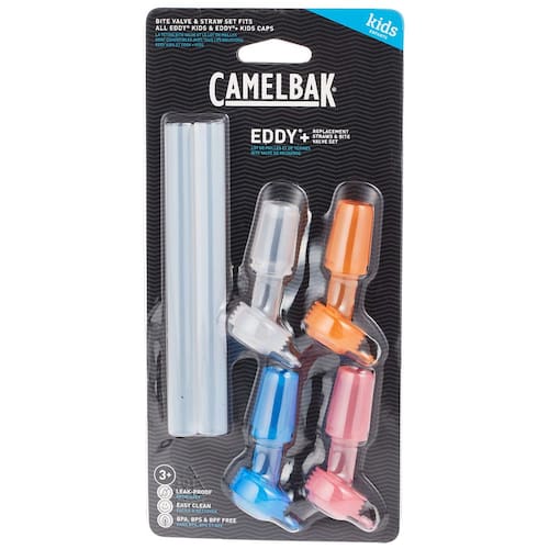 CamelBak Eddy+ Kids Pacote com 4, válvula de mordida e canudos, - À prova de vazamento: à prova de vazamento quando a válvula de mordida está fechada. - Fácil de limpar: todas as peças podem ser lavadas na lava-louças ou à mão com sabão neutro e água - Bebida limpa: livre de BPA, BPS e BPF - Inclui quatro válvulas de mordida e dois canudos - O conjunto de válvula de mordida e canudo serve apenas para tampas Eddy Plus Kids