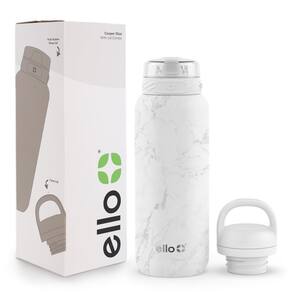 Ello Garrafa de água Cooper de aço inoxidável de 947 ml com 2 tampas e canudo | À prova de vazamento | Parede dupla e isolada a vácuo | Alça de transporte embutida | Pode ser lavada na lava-louças | - 2 tampas: escolha entre duas opções de tampa à prova de vazamento: um bico de silicone macio para beber facilmente ou uma tampa giratória para hidratação rápida. - Mantém frio o dia todo: parede dupla e isolamento a vácuo para manter as bebidas frias por até 24 horas. Mantenha-se hidratado não importa onde a vida o leve com nossa garrafa de água confiável. - 100% à prova de vazamento: nossa garrafa possui uma vedação de parafuso segura e à prova de vazamentos, permitindo que você a jogue em sua bolsa sem preocupações. - Fácil de viajar: leve sua garrafa de água onde a vida levar você, graças à alça de transporte embutida. Prenda-o à sua mochila, bolsa de ginástica ou carregue-o à mão. - Fácil de limpar: a tampa pode ser lavada na prateleira superior da lava-louças, o que facilita a limpeza. Recomendamos lavar o corpo à mão para maior longevidade, sinta-se à vontade para jogá-lo na máquina de lavar louça, se preferir. Todas as peças são livres de BPA.