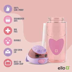 Ello Ellies Garrafa de água infantil de plástico de 473 ml com canudo e alça de transporte integrada e tampa de bloqueio à prova de vazamento para mochila escolar, lancheira e esportes ao ar livre, - Amigo de hidratação: perfeito para hidratação durante jogos esportivos, recreação e escola. Deixe seus pequenos escolherem sua garrafa favorita em forma de animal para se tornarem seus divertidos companheiros de hidratação durante todo o dia, adicionando um elemento extra de prazer a cada gole! - Durável: a garrafa de água infantil Ellies de 473 ml é feita de plástico Eastman Tritan durável que não racha, mancha ou cheira do uso diário. - Fácil de viajar: o laço embutido permite que você o carregue com facilidade ou prenda-o a uma mochila. Projetado para caber em um suporte de copo de carro e assento de carro e torna super fácil manter-se hidratado em movimento para escola, esportes e muito mais. - À prova de vazamento: a tampa flip fácil de usar com um toque ajuda a garantir que sua garrafa e bico estejam sempre livres de vazamentos. - Canudo de silicone macio: o canudo garante uma experiência suave e fácil, tornando a hidratação uma brisa para crianças de todas as idades.