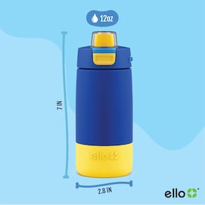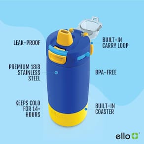 Ello Garrafa de água infantil Colby isolada de aço inoxidável de 340 g com canudo e porta-copos de silicone embutido, alça de transporte e tampa de bloqueio à prova de vazamento para mochila escolar, - Durável: o material de aço inoxidável 18/8 premium é construído para suportar quedas e muito mais. Todas as peças são livres de BPA. - Mantém frio: a garrafa de água infantil de aço inoxidável isolada a vácuo Colby de 350 ml mantém a bebida fria por mais de 14 horas. - Fácil de limpar: recomenda-se lavar à mão, tampa e canudo podem ser lavados na lava-louças. O bico de silicone é removível para facilitar a limpeza. - Design amigável para crianças: o laço embutido permite que você o carregue com facilidade ou prenda-o a uma mochila; projetado para caber em um porta-copos de carro e torna super fácil manter-se hidratado em movimento para escola, esportes e muito mais. - Mantenha-se hidratado: perfeito para hidratação durante jogos esportivos, recreação e escola.