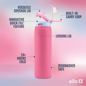 Ello Pop & Fill Garrafa de água de aço inoxidável de 640 ml com tecnologia de enchimento rápido, metal isolado a vácuo de parede dupla, tampa de bloqueio à prova de vazamento, Sip and Chug, - Tampa de enchimento rápido: Livre-se do incômodo de desaparafusar as tampas. Em vez disso, abra para recargas rápidas e convenientes em segundos, mantendo você em movimento sem perder o ritmo. - Gole duplo e chugue: Pop & Fill se adapta às suas necessidades de hidratação - beba um canudo com o apertar de um botão ou abra-o para uma bebida saudável. - 100% à prova de vazamento: carregue com confiança! A garrafa possui uma vedação segura e à prova de vazamento, permitindo que você a jogue em sua bolsa sem preocupações. O mecanismo de bloqueio adicional garante tranquilidade sem derramamentos em mochilas, bolsas e bolsas de ginástica. - Seguro para lava-louças: manter sua garrafa de água limpa nunca foi tão fácil. Todas as partes do Pop & Fill podem ser lavadas na lava-louças, facilitando a limpeza. - Fácil de viajar: leve sua garrafa de água onde a vida levar você, graças ao laço de transporte integrado. Prenda-o à sua mochila, bolsa de ginástica ou carregue-o à mão. A capa protetora do bico garante um bico limpo, tornando-a perfeita para o seu estilo de vida em movimento.