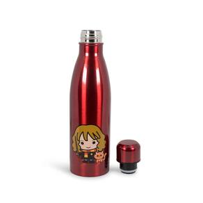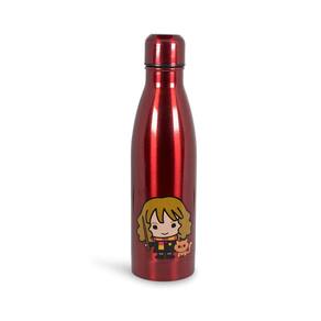 - Licenciada oficialmente – a garrafa de água de alumínio Harry Potter tem um acabamento polido com um revestimento vermelho ou marrom representando a cor da Grifinória da casa. Na parte inferior está uma chibi Hermione segurando uma varinha acompanhada por Crookshanks.