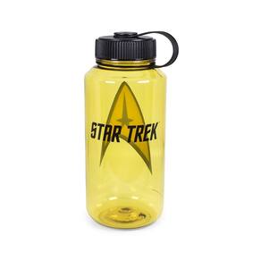 - Geeky Drinkware: coloque um pouco de estilo em cada gole. Esta garrafa de água de plástico tem um design amarelo translúcido, com o logotipo de Star Trek em um lado e o icônico símbolo Delta no outro lado. Ótimo para uso ativo, casual e diário.