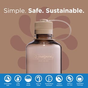 - Sustentabilidade em suas mãos: nossas novas garrafas de água Nalgene Sustain são feitas com material derivado de 50% de resíduos de plástico (usando equilíbrio de massa certificado ISCC). Este material é alimentado pela tecnologia de reciclagem de próxima geração que transforma o plástico em garrafas livres de BPA/BPS de alto desempenho para o dia a dia (e seguro!) uso.