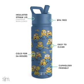 Simple Modern Garrafa de água infantil Minions com tampa de canudo | Copo de aço inoxidável isolado reutilizável para crianças pequenas, escola | Coleção Summit | 510 g, Minions Unite - Isolamento de parede dupla: mantém as bebidas em temperaturas ideais por horas - À prova de vazamento quando o bocal está na posição fechada; não recomendado para bebidas quentes ou gaseificadas. - Tampa livre de BPA e lavável na lava-louças na prateleira superior - Compatível com porta-copos: garrafas de 290 a 510 ml servem na maioria dos porta-copos - Garantia vitalícia limitada e pingente Pat/Pat. Produto oficialmente licenciado