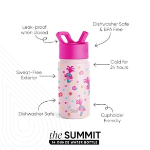 Garrafa de água infantil Simple Modern Trolls com tampa de palha | Copo reutilizável isolado de aço inoxidável para crianças pequenas, escolas | Coleção Summit | Mashup Trolls Poppy de 14 onças - Isolamento de parede dupla: mantém as bebidas em temperaturas ideais por horas - À prova de vazamentos quando o bico está na posição fechada; não recomendado para bebidas quentes ou gaseificadas. - Sem BPA e lavável na prateleira superior - Compatível com porta-copos: garrafas de 10 a 18 onças cabem na maioria dos porta-copos - Garantia vitalícia limitada e patente pendente