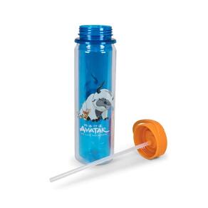 Avatar: Garrafa de água The Last Airbender Aang and Appa | Garrafa de plástico sem BPA com tampa de rosca e tampa de canudo dobrável | Hidratação esportiva | Comporta 16 onças