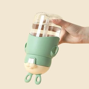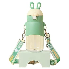 Garrafa de água temática infantil coelho não vaza com alça cor: verde a garrafa de coelhinho possui um design lindo e fofo no qual podemos amam carregar para todo lugar de forma divertida, pois a garrafa acompanha uma alça de sustentação ajustável podendo ser levada com segurança, de forma fácil e sem medo de perder. O material é de vidro, super resistente e possui os detalhes no design de silicone em formato de coelho. Possui canudo para melhor facilitar na hora de beber, alem de ter uma proteção maior na parte do tampa garantindo que a garrafa não vaze. ------------------ atenção ------------------ recomendamos lavar com água quente antes do primeiro uso. Modo de uso: 1- para abrir basta apertar no dentinho da garrafa. 2- você pode retirar/colocar a alça pelo mosquetão. ------------------ perguntas frequentes ------------------ a garrafa vaza r: possui uma proteção maior na parte da tampa garantindo que a garrafa não vaze. Quantos ml cabe na garrafa r: 600ml. Qual o material da garrafa r: a garrafa é de vidro. A garrafa possui adesivo r: sim, a garrafa acompanha adesivo. ------------------ especificações ------------------ altura: 23cm. Largura: 8cm. Capacidade: 500ml. Material: vidro e silicone. ------------------ conteúdo ------------------ 1x garrafa. 1x canudo 1x alça de sustentação. 1x adesivo. Anúncio referente a garrafa