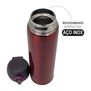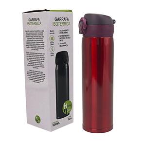Garrafa de água térmica 500ml inox trava segurança vermelha