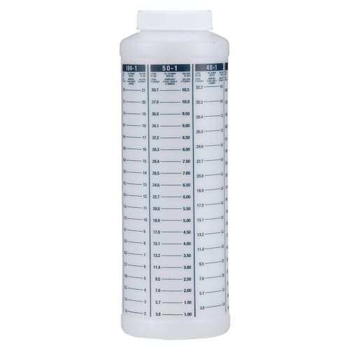 - A garrafa conveniente de boca larga permite a adição da quantidade exata de óleo necessária para um motor de 2 ciclos