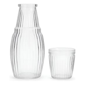 A união perfeita de utilidade e sofisticação para sua água e sucos! Um item indispensável que adiciona um toque de charme e funcionalidade à sua mesa de cabeceira, escritório ou mesa de jantar. - Perfeita para manter sua hidratação em dia ou servir sucos e águas aromatizadas com elegância. -O copo de vidro se encaixa perfeitamente como uma tampa, protegendo o líquido de poeira e impurezas e economizando espaço. -O vidro não retém odores, cores ou sabores, garantindo que sua água ou suco permaneça puro. Especificações Técnicas: - Material: Vidro - Dimensões Aprox.: 25cm (ALTURA) x 6cm (LARGURA) - Jarra - Dimensões Aprox.: 9cm (ALTURA) x 4cm (LARGURA) - Copo - Capacidade da jarra: 1L - Capacidade do copo: 200ml Itens Inclusos: - 01x Jarra - 01x Copo