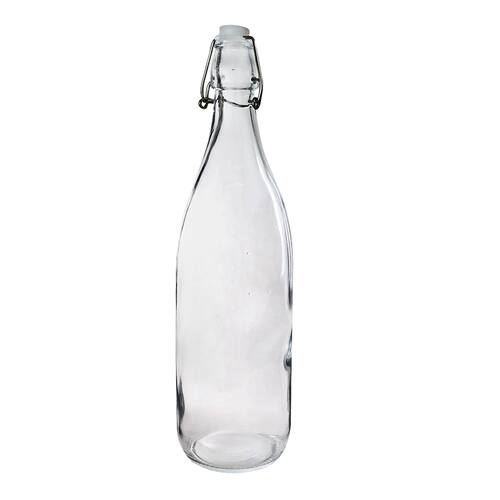 GARRAFA DE VIDRO TRANSPARENTE COM TAMPA HERMÉTICA 1000ML - GA10016