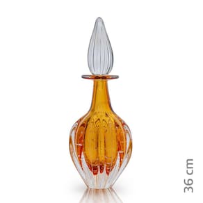 Garrafa Em Cristal Murano Ambar São MarcosComprimento:14cmLargura:14cmAltura:36cmPeso:3240gProduzida 100% artesanalmente com a técnica secular e originária da Itália, a qual com muita maestria e criatividade são desenvolvidas e preservadas no Brasil pela Cristais São Marcos desde 1962. As escolhas das peças são versáteis e podem ser usadas para decorar casas e ambientes dos mais variados estilos. A tradição do Cristal Murano e a inovação em detalhes, formas e cores, trazem requinte para a decoração. O colorido do Muranoem especial, torna-se um coringa na decoração e produzem um efeito muito bonito em locais com luz natural, não dependendo de nenhum outro elemento para se destacar. As peças em Cristal Murano, são atemporais, aposte nelas como a estrela da decoração ou ainda para harmonizar em combinações com diferentes artigos para compor um ambiente. Junto com as peças em Murano, leve ainda um pouco de história. Uma dica é misturar diferentes Muranos e criar sua coleção de arte particular. O cristal Murano, tornou-se objeto de desejo por suas características únicas. Sendo assim, com todas essas particularidades, ele é uma ótima escolha para decorar, colecionar e ainda presentear com classe e sofisticação.