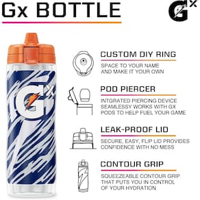 - Inclui (1) garrafa de compressão recarregável Gatorade Gx de 30 fl oz -