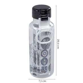 Portanto esta é uma companheira encantadora para as aventuras diárias dos pequeninos. Conta com uma capacidade generosa de 600 ml de água ou refresco, sendo tanto funcional quanto cheia de estilo, porque apresenta uma decoração infantil encantadora. A total transparência da garrafa confere uma qualidade visual realista e os adesivos exclusivos garantem que o design permaneça vibrante, de acordo com a criação própria dos pequeninos, já que acompanha uma cartela com aproximadamente 24 adesivos em vinil, para que as crianças possam criar a decoração exatamente como desejarem, adicionando um toque pra lá de pessoal à sua garrafa.