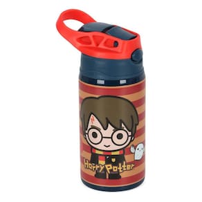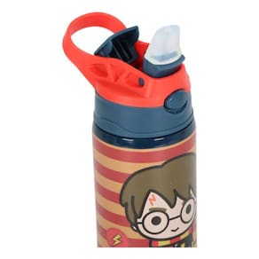 Armazenamento 500ml; Fechamento em rosca; Tampa com bico dosador; Suporte para carregar; Válvula antivazamentos; Acompanha canudo; Estampa: harry potter Observação: não é térmica.