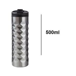 Capacidade: 500ml Altura: 22,5 cm Largura 7 cm Material: Aço inoxidável Cor: cinza