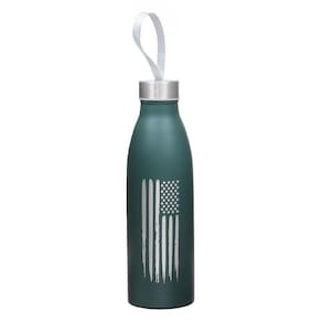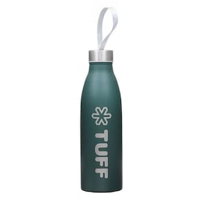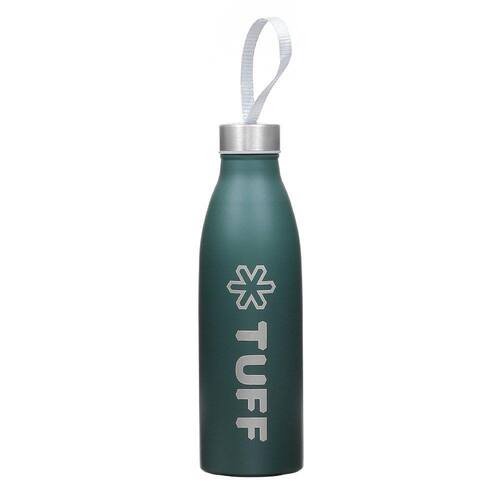 Garrafa Tuff fabricada em aço inox com pintura fosca na cor Verde com capacidade para 750ml e tampa com rosca com cordão.