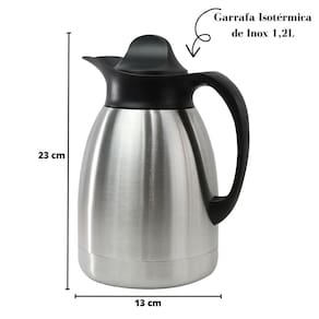 Informações Técnicas: Composição: Aço Inox e Plástico. Capacidade: aproximadamente 1,2 litro. Altura com tampa: 23cm. Diâmetro: 13cm. Peso: 616 gramas.