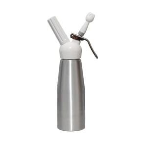 Garrafa para chantilly e espumas Standart CP 500 ml FPRO Acompanha: 10 cápsulas de gás. Descubra maneiras deliciosas de finalizar bebidas e sobremesas . Preparo rápido, chantili firme e duradouro. Com a garrafa para chantilly Fpro você prepara deliciosas receitas frias para chantili, cremes aerados, mousses, espumas e molhos de forma prática e versátil. Ideal para incrementar sobremesas, sorvetes, milk shakes, cappuccinos e cafés. Revestimento interno da garrafa em Teflon, facilitando a limpeza. Modo de preparo do chantili: - verificar se a garrafa está bem montada. Para melhor resultado, resfrie a garrafa. - colocar 500 ml de chantili de sua preferência; - fechar bem a garrafa - Coloque a ampola de gás com a garrafa invertida para melhor homogenização. - Agitar bem a garrafa e utilizar. Características: - composição: alumínio e plástico - marca: FPRO - cor: Prata - capacidade: 500 ml - altura: 32 cm - diâmetro: 8 cm - peso: 580 g Contem: - garrafa 500 ml; - porta cápsula; - 1 bico plástico liso; - 1 bico plástico tulipa; - 1 bico plástico reto - 1 escova para limpeza; - 1 manual de instruções. - 10 cápsulas de gás. Ean: 7010653814759