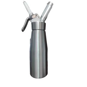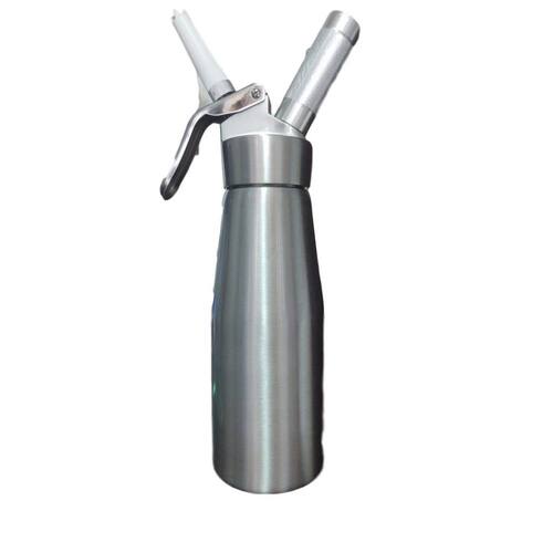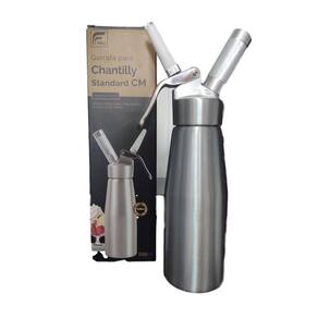 Garrafa Para Chantilly Sifão 500Ml Prata - Fpro Com a garrafa para chantilly prata fpro , você prepara deliciosas receitas frias e quente para chantilly , cremes areados, musse, espumas e molhos de forma prática e versátil. Descubra maneiras deliciosas de finalizar bebidas e sobremesas . Preparo rápido e duradouro. Ideal para incrementar sobremesas, sorvetes, milk skakes , cappuccinos e cafés. Revestimento interno da garrafa em teflon facilitando a limpeza. Modo de preparo do chantilly: - verificar se a garrafa está bem montada. Para melhor resultado resfrie a garrafa. - colocar 500 ml de chantilly de sua preferencia - fechar bem a garrafa - coloque a ampola de gás com a garrafa invertida para maior homogenização - agitar bem a garrafa e utilizar. Características : - composição : alumínio - marca : fpro - capacidade : 500 ml - altura 32 cm - diâmetro ;8 cm - peso ; 580 g Itens inclusos: - 1 garrafa sifão 500 ml - 1 porta capsula - 1 bico plástico liso - 1 bico plástico tulipa - 1 bico plástico reto - 1 escova para limpeza