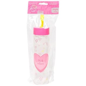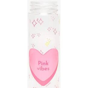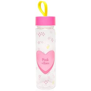 O rosa vai refrescar a temporada com muito estilo. A Garrafa Plástica de 500 ml Pink Vibes é transparente e possui uma linda estampa exclusiva. É prática, fácil de levar e produzida com resina de acrilonitrila-estireno, polipropileno e silicone.