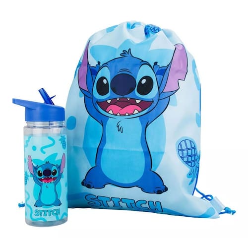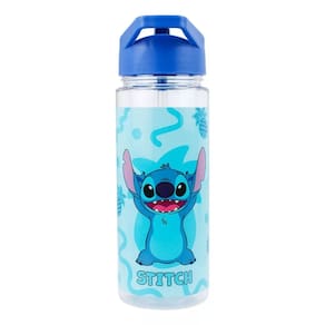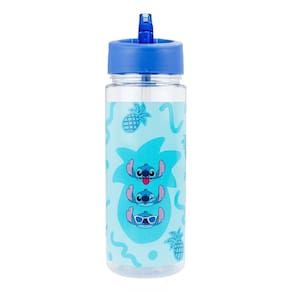 Garrafa de plástico com canudo e capacidade para 450 ml na cor azul estampada com imagem do Stitch e imagens de abacaxi. Vem dentro uma mochila tipo saco com 41 x 31 cm de dimensão na mesma característica. Material: garrafa de plástico; mochila de poliésterCódigo: DEAS026-ST2-DPeso: 130gAltura: 20cmLargura: 7cmComprimento: 7cm