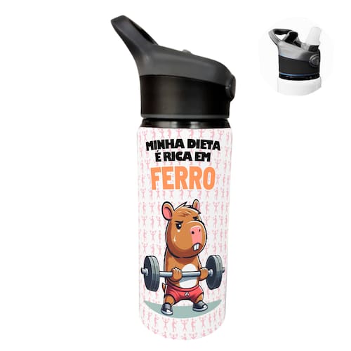 Garrafa Squeeze 600ml Capivara Academia Minha dieta é rica em ferroBico Retrátil,aperte o botão para abrir e depois precione o bico no local indicado para fecharIdeal para você ou presentear!Capacidade: 600mlMaterial: AlumínioProduto novo com caixaVALOR UNITÁRIOLavar antes do usoNÃO Pode ir no micro-ondasNÃO CONGELARLavar com esponja maciaQuedas ou choques podem danificar o produto Marca: LARANJA E MIMOS