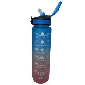 - Altamente resistente e durável - Acabamento fosco e em degrade de cores - Com marcador de horas - Fechamento com trava - Anel de vedação - Bico flip de silicone - Capacidade: 1 Litro