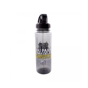 A garrafa do Santos FC é volumosa, vem com tampa modificada para levar na mão com mais comodidade.