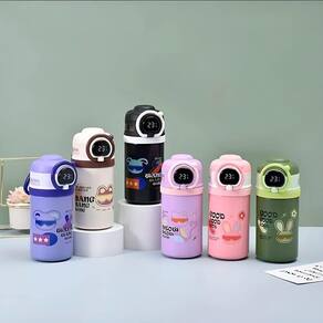 Garrafa Squeeze Copo Térmico Infantil Tela Digital Termômetro lilás