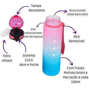 Garrafa Squeeze De Água Para Academia 1L Tie Dye Degrade Cor: Rosa Garrafa Squeeze Degradê Tie Dye de 1 Litro