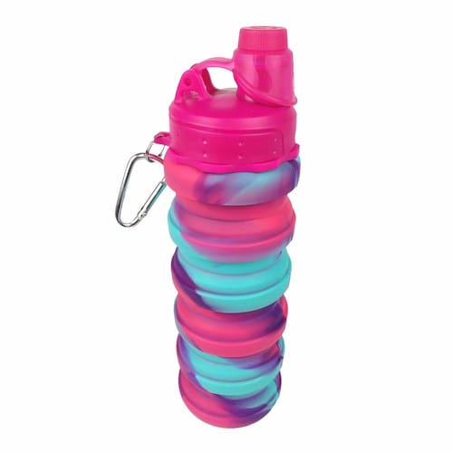 Garrafinha Squeeze dobrável feita de silicone, cores vivas, 500ml na forma aberta ou 225ml quando fechado. Super prático para viagem ou para sua prática esportiva.