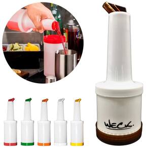 A Garrafa Storen da marca Weck é ideal para armazenar e servir bebidas com praticidade e segurança. Com capacidade de 1 litro, possui tampa de rosquear com bico embutido, que facilita o uso e evita desperdícios. Seu design funcional é perfeito para uso em bares, eventos, restaurantes ou no dia a dia em casa. Feita com material resistente e de fácil higienização, é uma excelente opção para quem busca eficiência e organização no preparo de drinks ou no armazenamento de líquidos em geral.