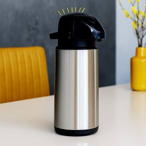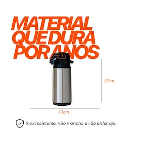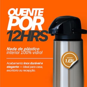 Capacidade de 1,8 litros Revestimento externo 100% em inox escovado, resistente e elegante Ampola interna de vidro, ideal para manter líquidos quentes ou frios por longos períodos Tampa com acionamento por pressão, prática e segura Sistema de vedação eficiente, evita vazamentos Design robusto e ideal para uso doméstico ou comercial