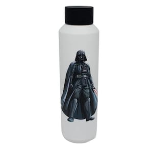 Especificações: Marca: zona criativa Modelo: darth vader - star wars Licenciador: disney Altura: 24,5cm largura: 6,5cm comprimento: 6,5cm Capacidade: 600ml Material: aço inoxidável Cor predominante: cinza