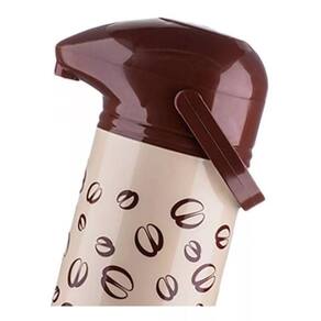 Além do design requintado com estampas de café, a garrafa dispõe de um sistema de pressão para a saída do líquido e bico corta pingo, garantindo uma maior higiene na hora de servir chás e cafezinhos.