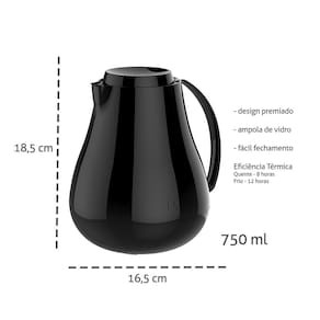 Contêm: 1 Garrafa Bule Térmico Capacidade: 750 ml Dimensão: 15 x 16,5 x 18,5 cm