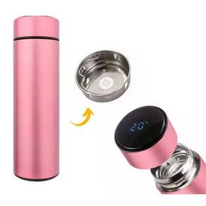 Garrafa térmica café, água com sensor de temperatura em led Cor: rosa garrafa térmica em aço inox com termômetro