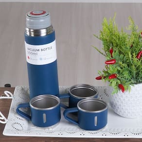 Isolamento Térmico Eficiente: Mantém as bebidas quentes quentes por horas e bebidas frias geladas por um tempo igualmente longo. Design Durável e Elegante: A Garrafa Térmica com Xícara é fabricada com materiais duráveis, tornando-a resistente a impactos e quedas. Além disso, seu design é elegante e atraente, adequado para diferentes ambientes. A tampa da garrafa é projetada com mecanismo que facilita a abertura e o fechamento com uma só mão, tornando-a conveniente para o uso no dia a dia, especialmente durante atividades ao ar livre.