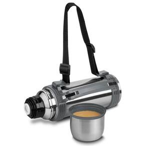 Garrafa térmica em aço inox com parede dupla isolada a vácuo,com capacidade de até 1,2l. Além de garantir a temperatura ideal do líquido por horas, é muito fácil de ser transportada por sua alça lateral plástica, que torna o uso desse potente recipiente muito mais simples. Tampa rosqueável e anel de silicone para vedação na tampa.