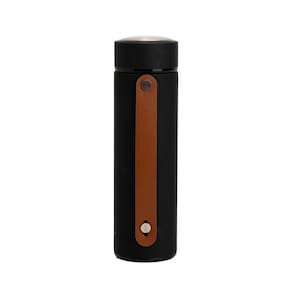 Garrafa Termica Com Alca Preto E Marrom Ideal para você ter suas bebidas favoritas sempre à mão com estilo e comodidade, nossa Garrafa Térmica Com Alça Preto e Marrom chegou para te ajudar a agilizar a rotina durante as suas pausas para hidratação. Toda preta em aço inox e apresentando um design moderno, ela conta com uma alça na cor caramelo e uma capacidade para 460 ml, sendo perfeita para te acompanhar no dia a dia.